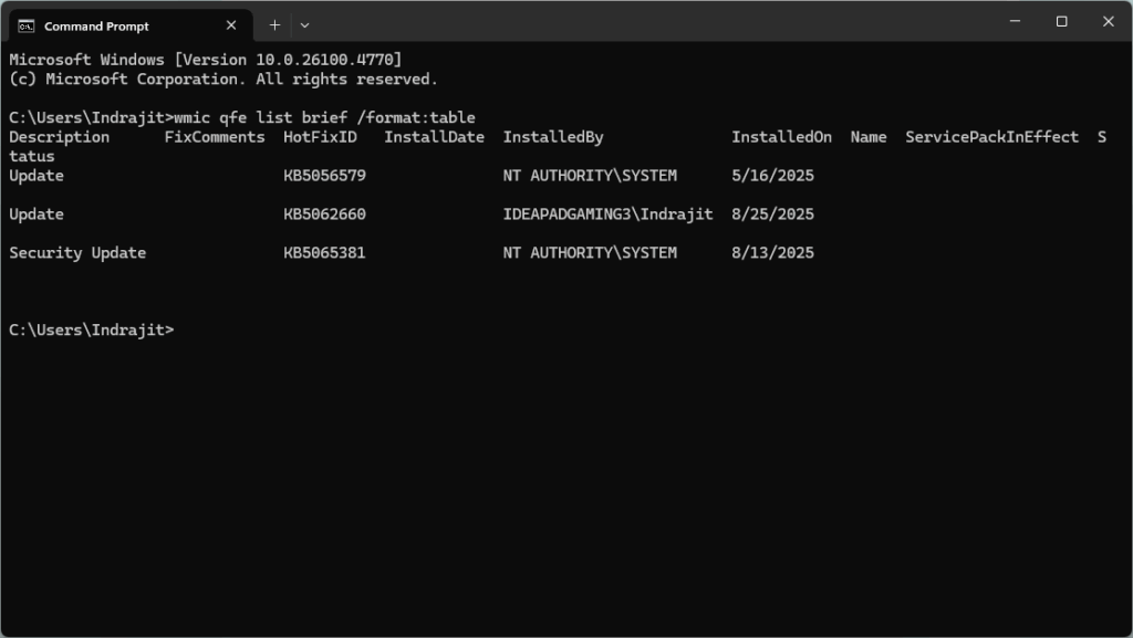 wmic qfe list brief /format:table